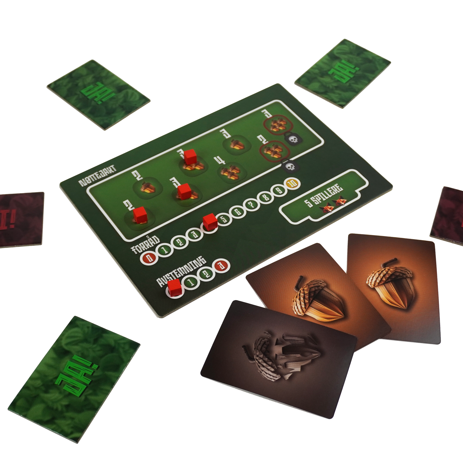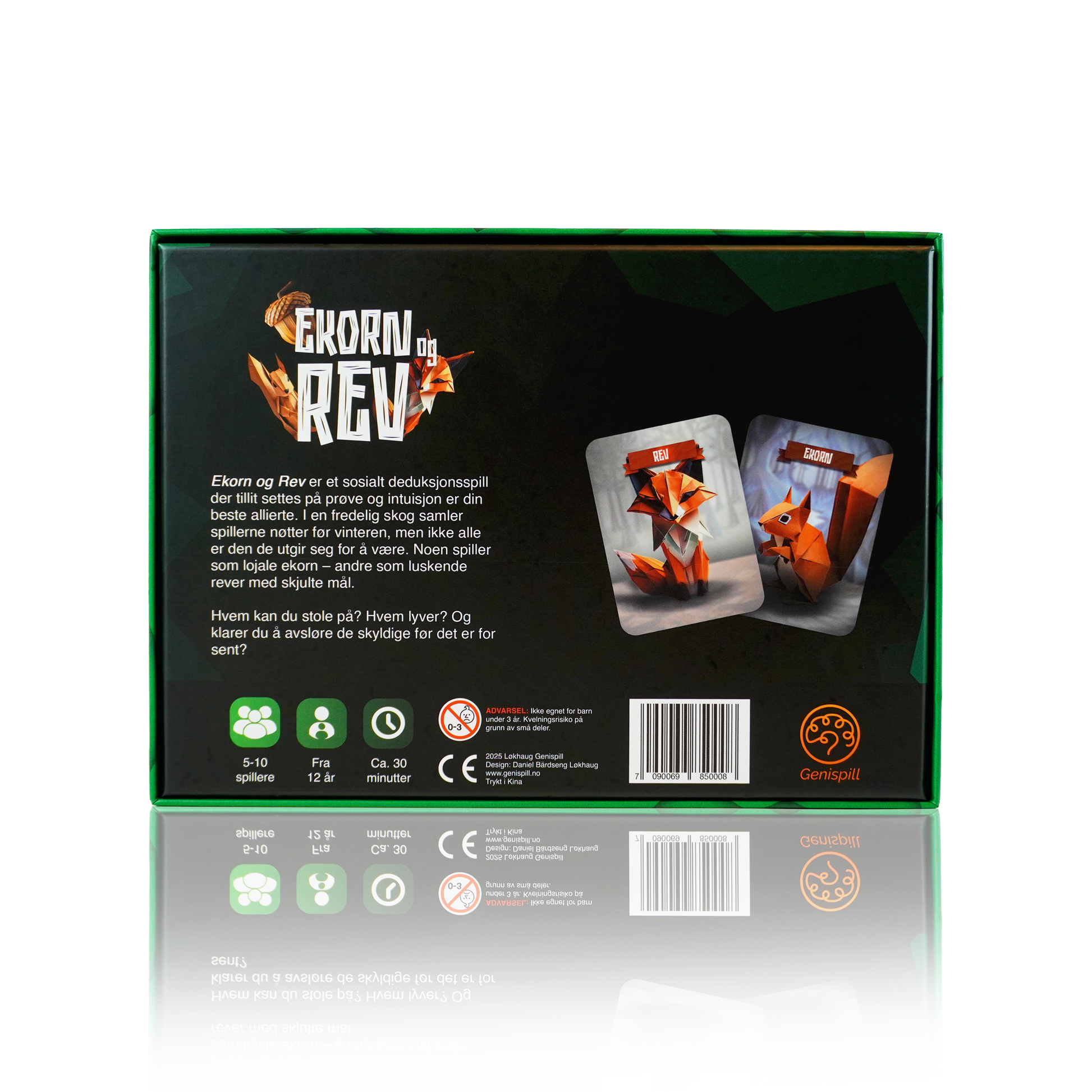 Ekorn og Rev er et sosialt deduksjonsspill for 5-10 spillere der tillit settes på prøve og intuisjon er din beste allierte. I en fredelig skog samler spillerne nøtter før vinteren, men ikke alle er den de utgir seg for å være. Noen spiller som lojale ekorn – andre som luskende rever med skjulte mål.